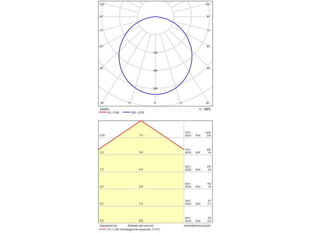 - integrovaný LED zdroj vydáva teplé biele svetlo (3000K)