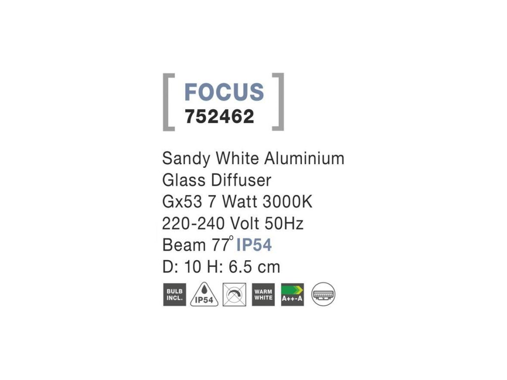 Vonkajšie stropné svietidlo FOCUS, LED GX53 7W 3000K 77st. IP54