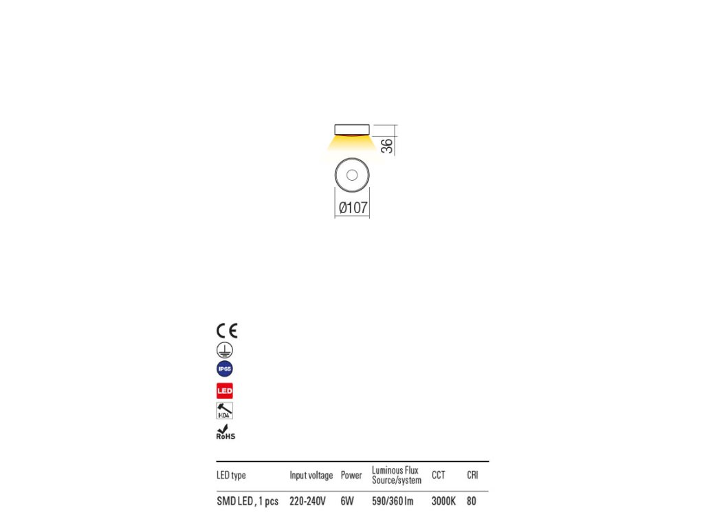 Vonkajšie svietidlo má telo z hliníka v lakovanej bielej matnej alebo tmavo šedej farbe a priehľadnú sklenenú šošovku, pod ktorou je zabudovaný 1 LED zdroj, ktorý vyžaruje svetlo jedným smerom – dole alebo 2 LED zdroje, ktoré vyžarujú smerom hore aj dole. Integrovaný LED zdroj má farbu svetla 3000K. Vonkajšie svietidlo LOG má ochranné krytie IP65, ktoré zaisťuje ochranu pred prachom a vodou z akéhokoľvek smeru. Svietidlo LOG je dostupné v prevedení stropné a nástenné s výkonom 6W alebo 2x6W napájania 220-240V, CRI80.Dodatočné parametre