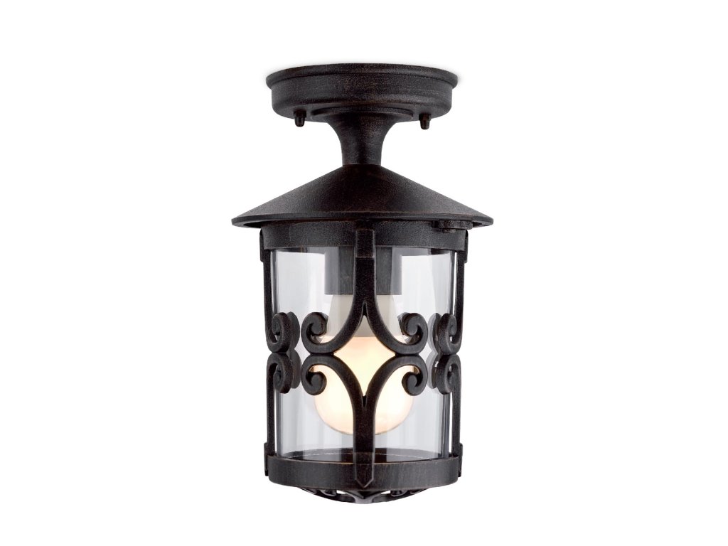 Vonkajšie stropné svietidlo z liateho hliníka, hrdzavá povrchová úprava, sklenený difúzor.