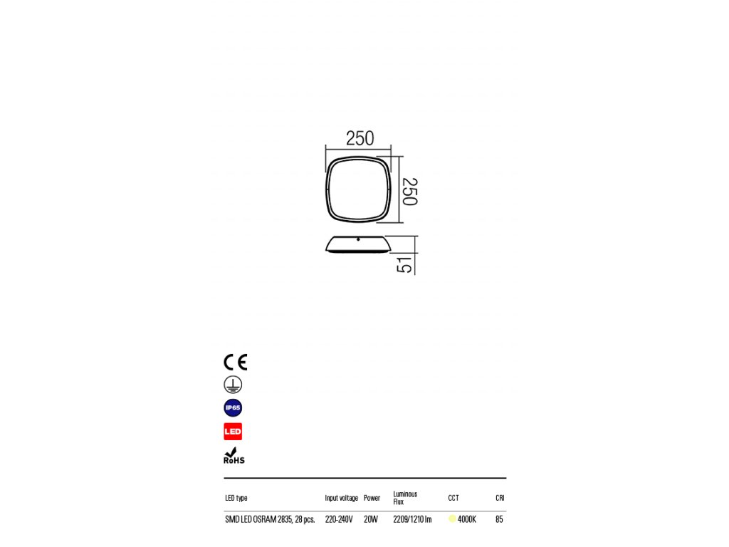 Stropné vonkajšie svietidlo vybavené LED diódami, s priamym / nepriamym osvetlením s efektom nástenného osvetlenia.Dodatočné parametre