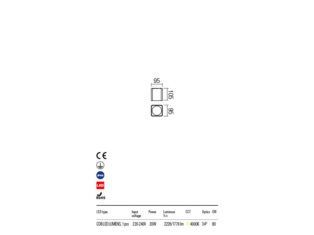 Vonkajšie stropné svietidlo vybavené LED diódami COB s vysokou svetelnou účinnosťou. Hliníková konštrukcia s priehľadným difúzorom z tvrdeného skla.Dodatočné parametre