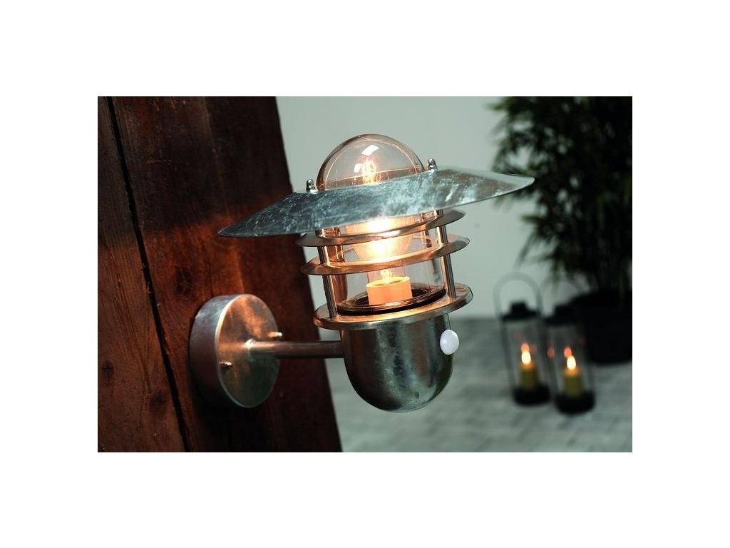 Moderná vonkajšia nástenná lampa z galvanizovanej ocele s tienidlom z číreho skla a okolitými okrúhlymi prvkami, ktoré dodávajú svietidlu pekný vzhľad. Svietidlo je vybavené pohybovým senzorom a je praktickým riešením osvetlenia Vášho domu. Možno doplniť svietidlom bez senzora alebo záhradným stĺpikom zo série.Dodatočné parametre