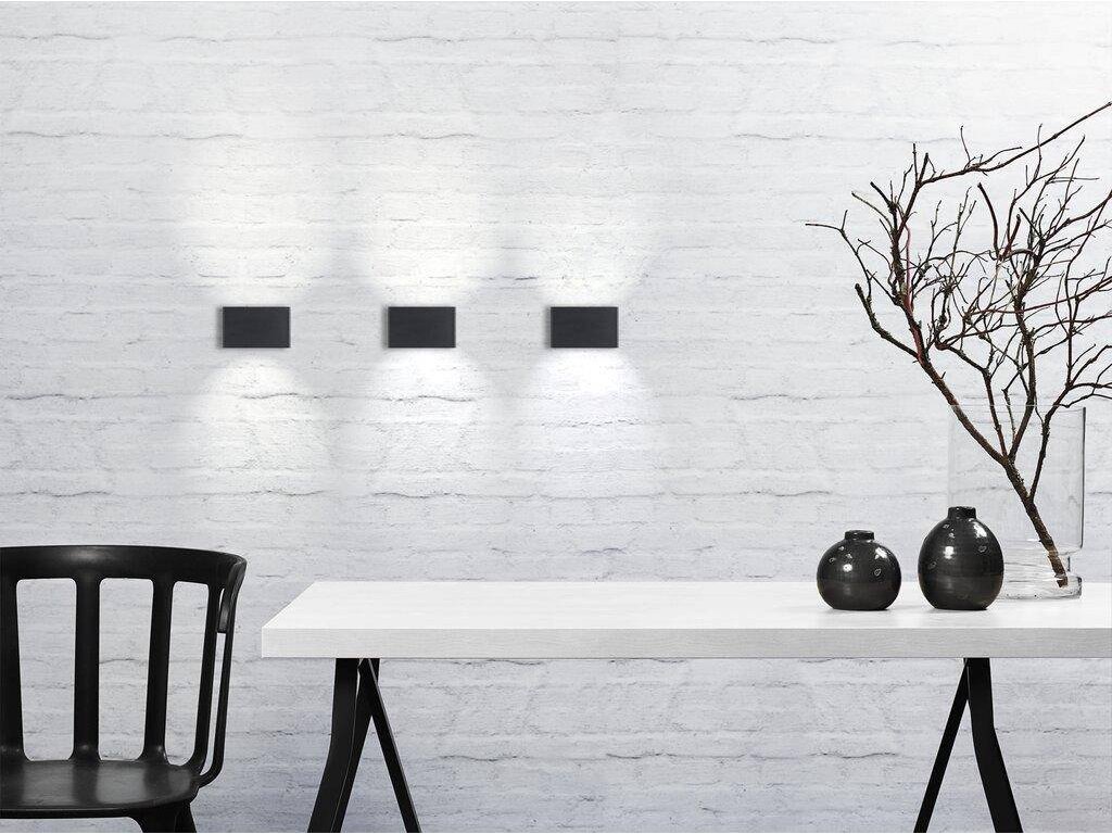 Hranaté vonkajšie LED svietidlo na vonkajšie použitie, vyrobené z lakovaného kovu. Dokonale bude lemovať línie Vášho domu, garáže či terasy. Kombináciu direct/indirect osvetlenia oceníte aj na balkóne alebo pri vstupných dverách. Moderné prevedenie podčiarkuje elegantná čierna farba. Súčasťou svietidla je LED zdroj s nízkou spotrebou energie a dlhou životnosťou.
