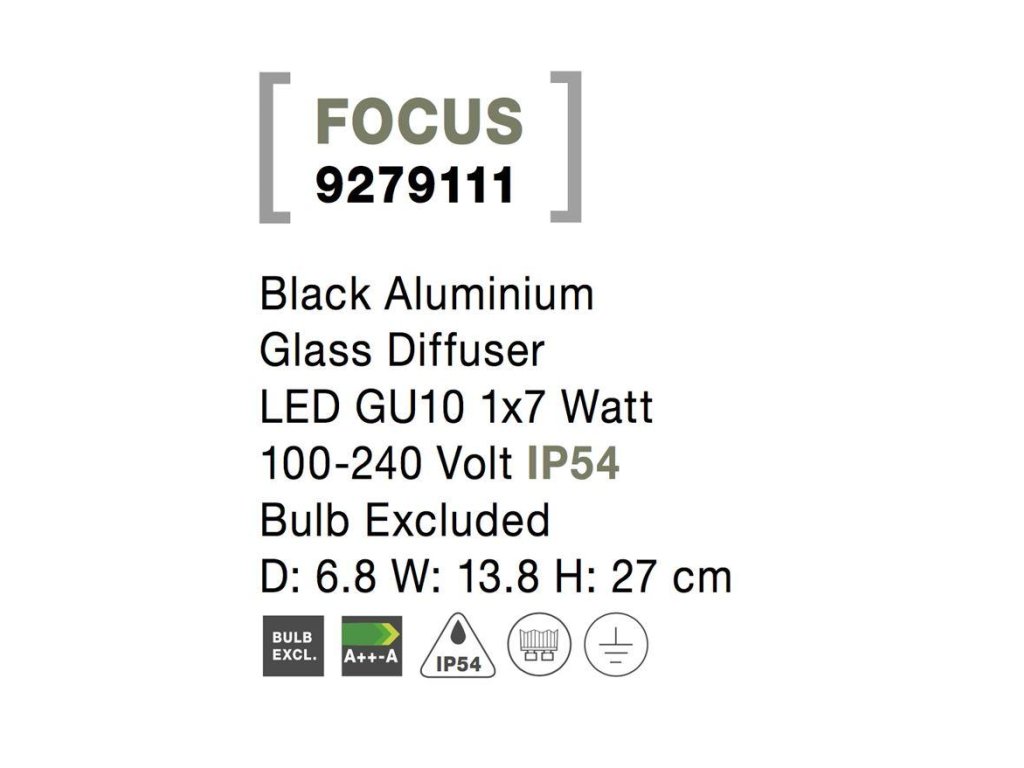 Vonkajšie svietidlo s bodcom FOCUS čierny hliník sklenený difúzor GU10 1x7W IP54
