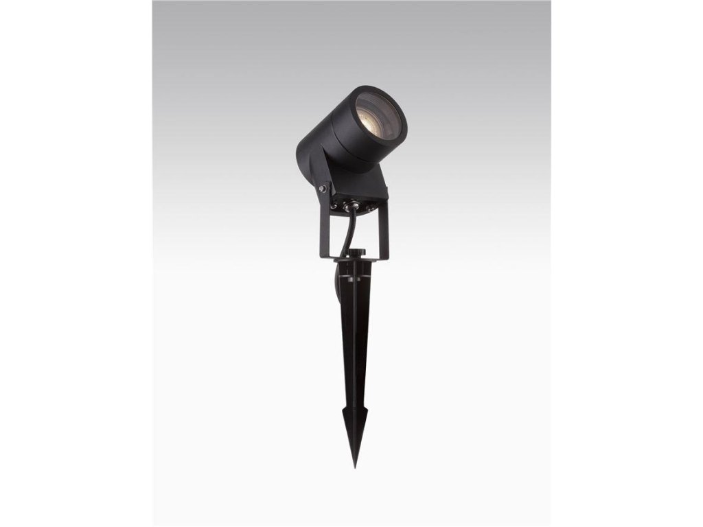Vonkajšie nastaviteľné svietidlo VIDA s bodcom na upevnenie do zeme. Svietidlo je vyrobené z hliníka v čiernej farbe. Rozmery svietidla sú d7 x š9,5 x v21 cm. Žiarovka GU10 nie je súčasťou balenia, žiarovku môžete vybrať na tu.