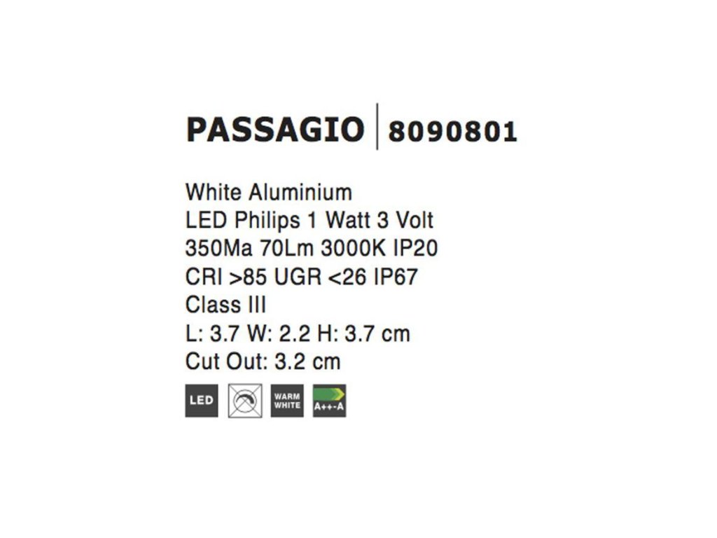 Vonkajšie zapustené svietidlo do steny PASSAGGIO biela hliník LED 1W 3000K 3V IP54 dĺžka kábla 1.80m použite driver 9020170
