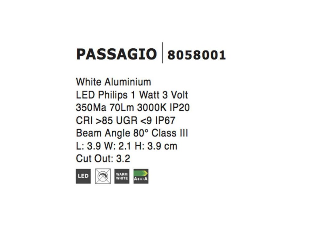 Vonkajšie zapustené svietidlo do steny PASSAGGIO biela hliník LED 1W 3000K 3V IP54 dĺžka kábla 1.80m použite driver 9020170