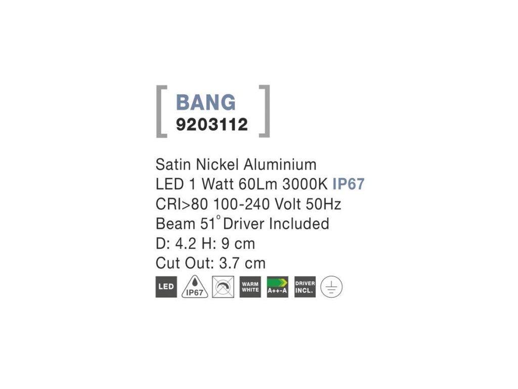 Vonkajšie zapustené svietidlo do zeme BANG nikel satén hliník LED 1W 3000K IP67, vr. driveru