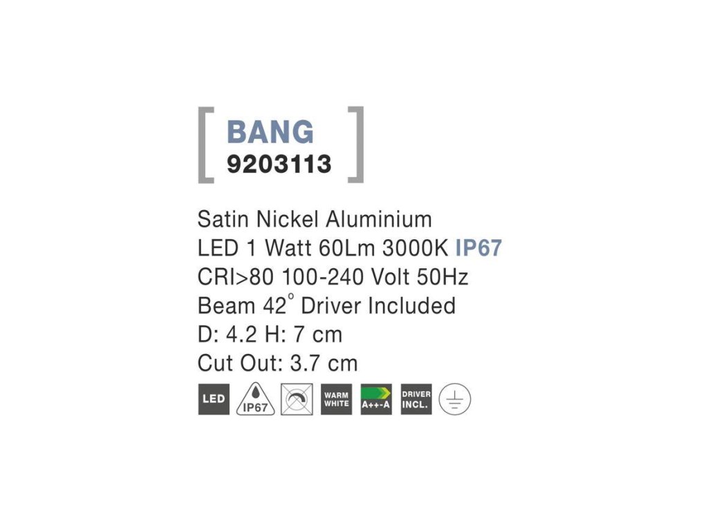 Vonkajšie zapustené svietidlo do zeme BANG nikel satén hliník LED 1W 3000K IP67, vr. driveru