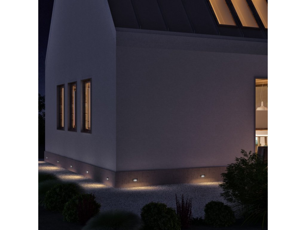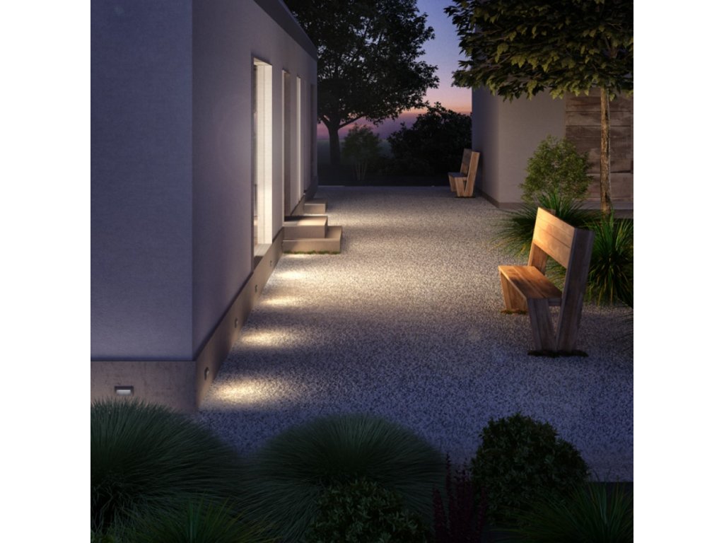 Zápustné obdĺžnikové LED svietidlo Gordiq v dvoch farebných variantách - biela a antracit. Svietidlo je vhodné na orientačné nasvietenie chodníkov, schodísk alebo terás. Inštalácia je možná iba svietením dole. Svietidlo je veľmi odolné vďaka vysokému stupňu krytia IP65. Farba svetla je 3000K, teplá biela.