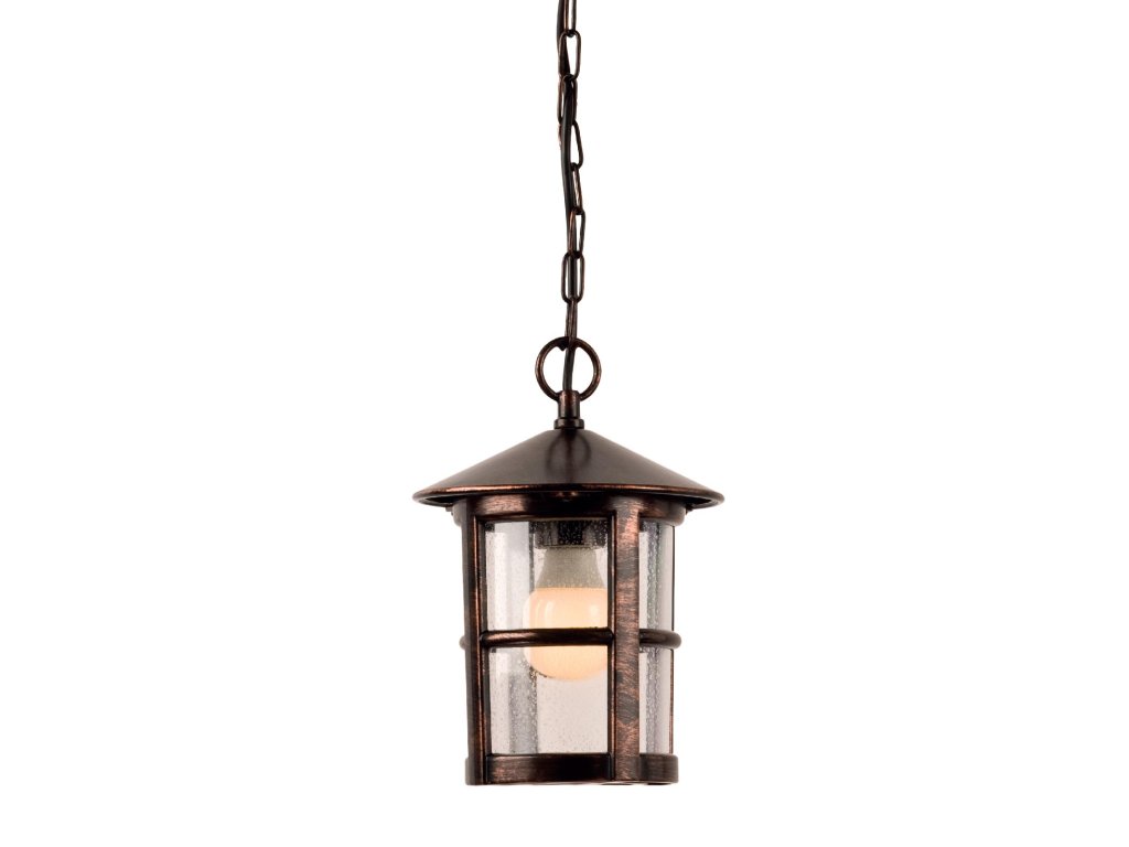 Vonkajšie závesné svietidlo z liateho hliníka, čierna, medená patina, polykarbonátový difúzor. Žiarovka E27 nie je súčasťou balenia.