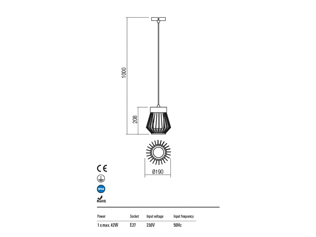 Vonkajšie závesné svietidlo, ktoré sa vďaka svojmu modernému vzhľadu stane aj záhradným doplnkom. Vyrobené z hliníka s polykarbonovým difúzorom. Odporúčame LED zdroj s päticou E27 - nie je súčasťou balenia.Dodatočné parametre