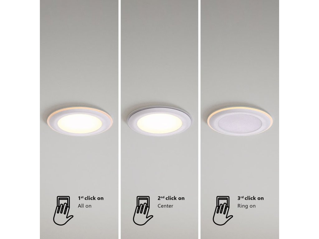 Zapustené LED bodové svetlo s integrovanými LED diódami a 3-krokovou funkciou Moodmaker™. Prepínajte medzi 3 rôznymi svetelnými scénami pomocou bežného prepínača. Vhodné ako nočné svietenie do chodieb, alebo detskej izby.
