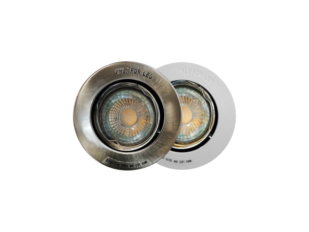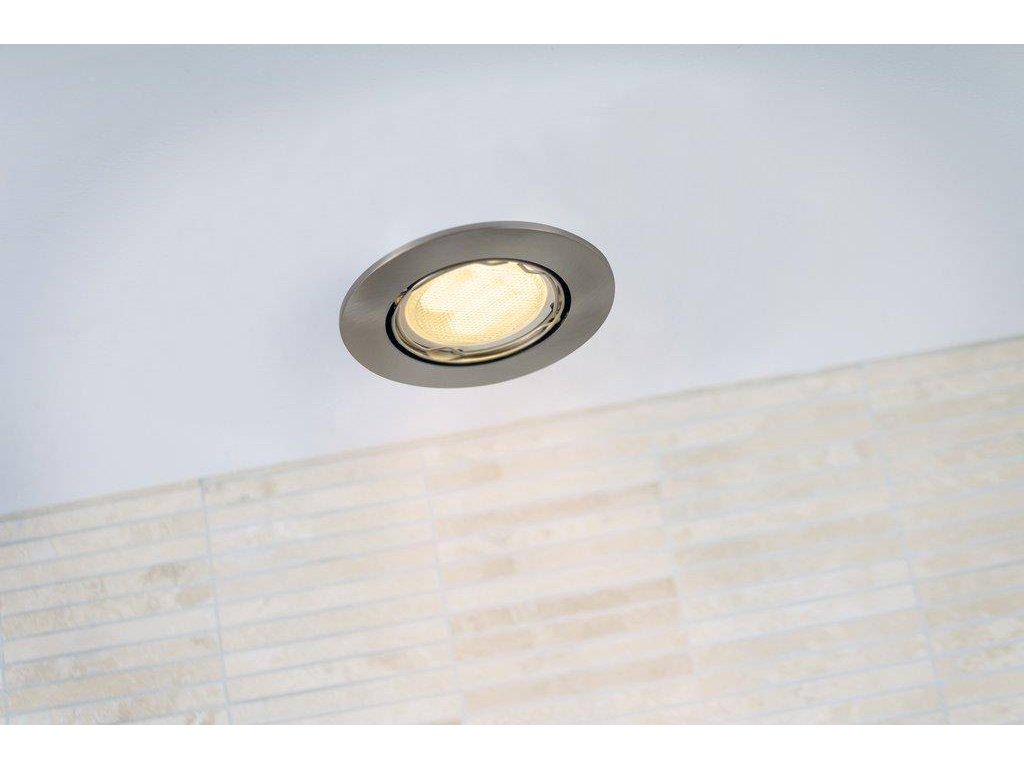 Jednoduché vstavané bodové svietidlo s nastaviteľným a vymeniteľným vonkajším krúžkom z brúsenej ocele/biela. Vhodné pre vnútorné aj vonkajšie použitie, napr. na inštaláciu do podhľadov a na montáž priamo do izolácie. Vrátane inštalačnej krabice, žiarovka nie je súčasťou.