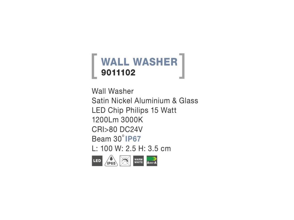 WALL WASHER nikel satén hliník a sklo LED Chip Philips 15W 3000K DC24V 30st. IP67