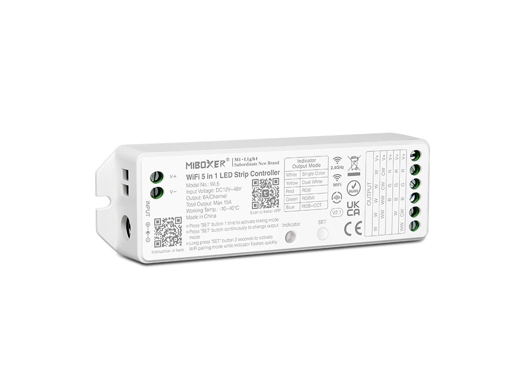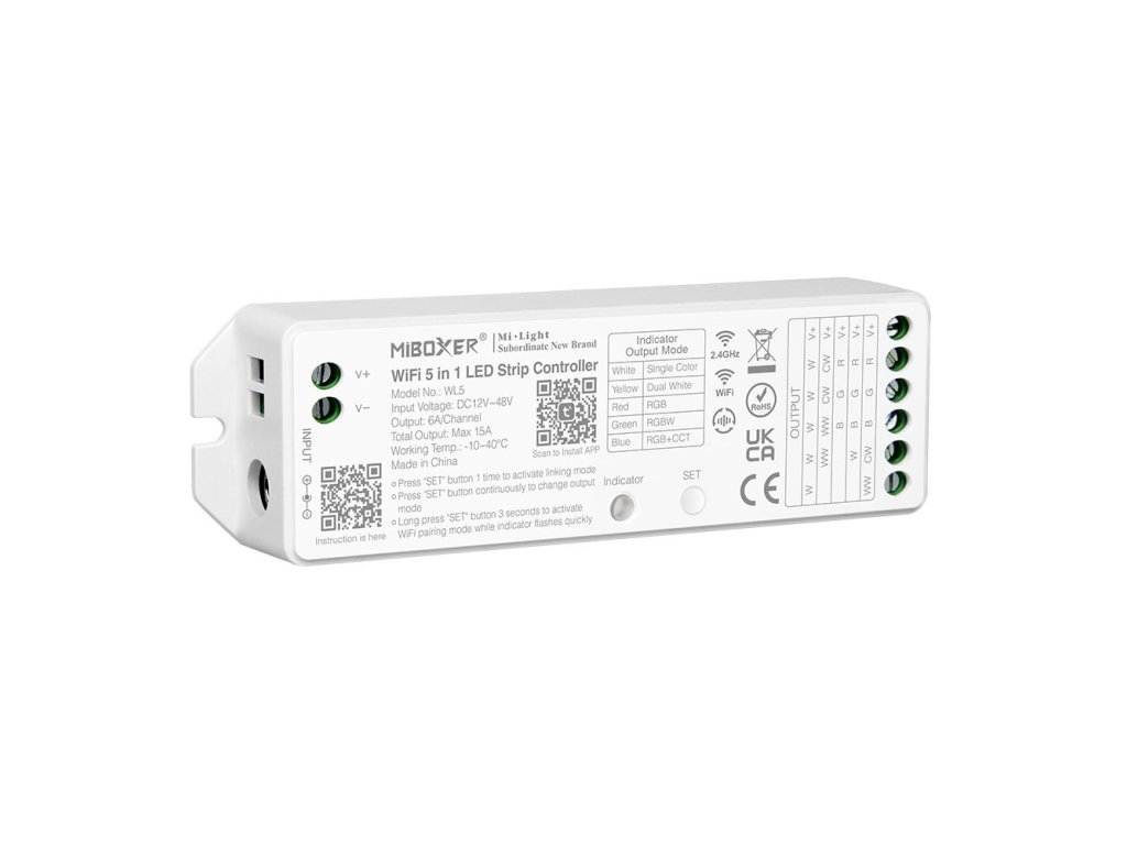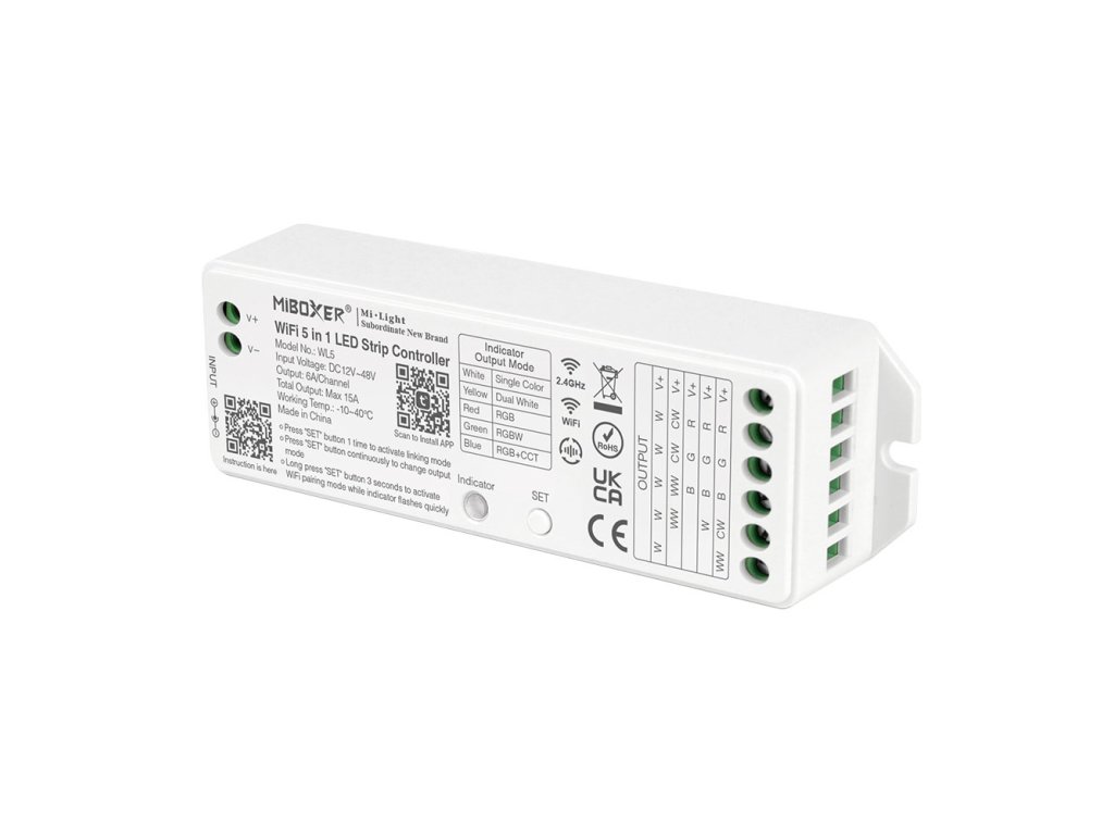 Múdra WiFi riadiaca jednotka Mi-Light WL5 pre jednofarebné, CCT, RGB, RGBW a RGBCCT LED pásky.
