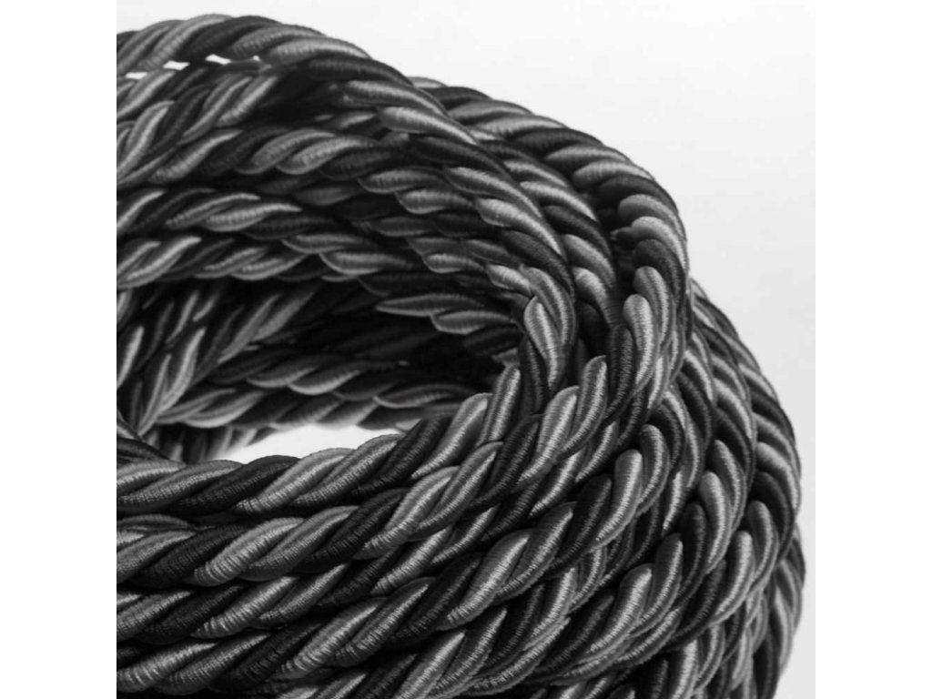 XL elektrický kábel 3x0,75 potiahnutý lesklou šedou hodvábnou textíliou Orleans, priemer 16 mm