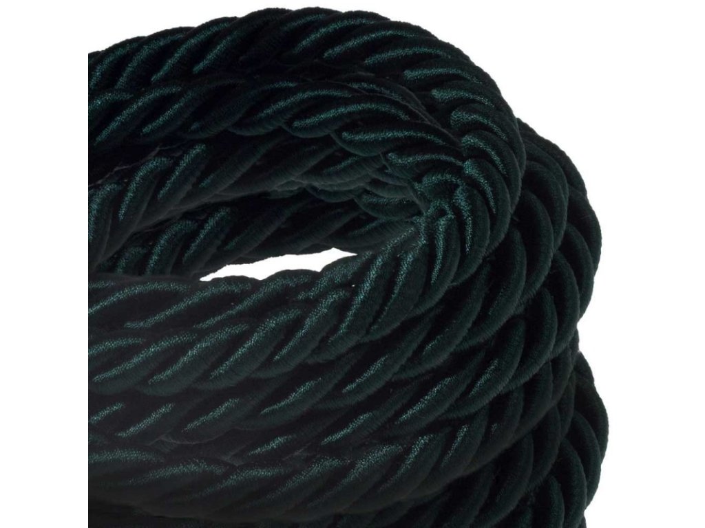 XL elektrický kábel 3x0,75 potiahnutý lesklou tmavo zelenou textíliou, priemer 16 mm