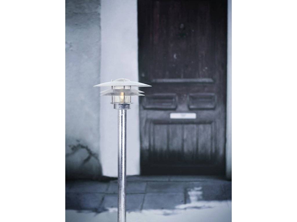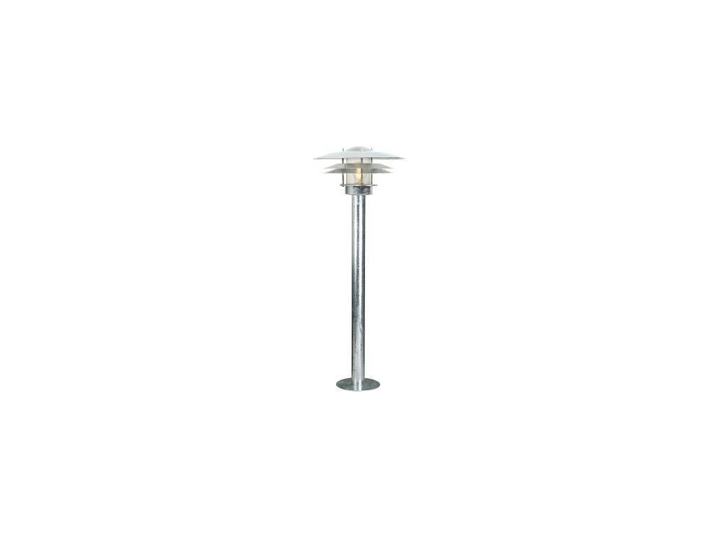 Záhradný stĺpik v modernom galvanizovanom prevedení so skleneným stredom a dekoratívnymi strieškami. Možno kombinovať s nástenným svietidlom v rovnakom dizajne. Pre dokonalý vzhľad doplňte svietidlo štýlovou vintage žiarovkou.Dodatočné parametre