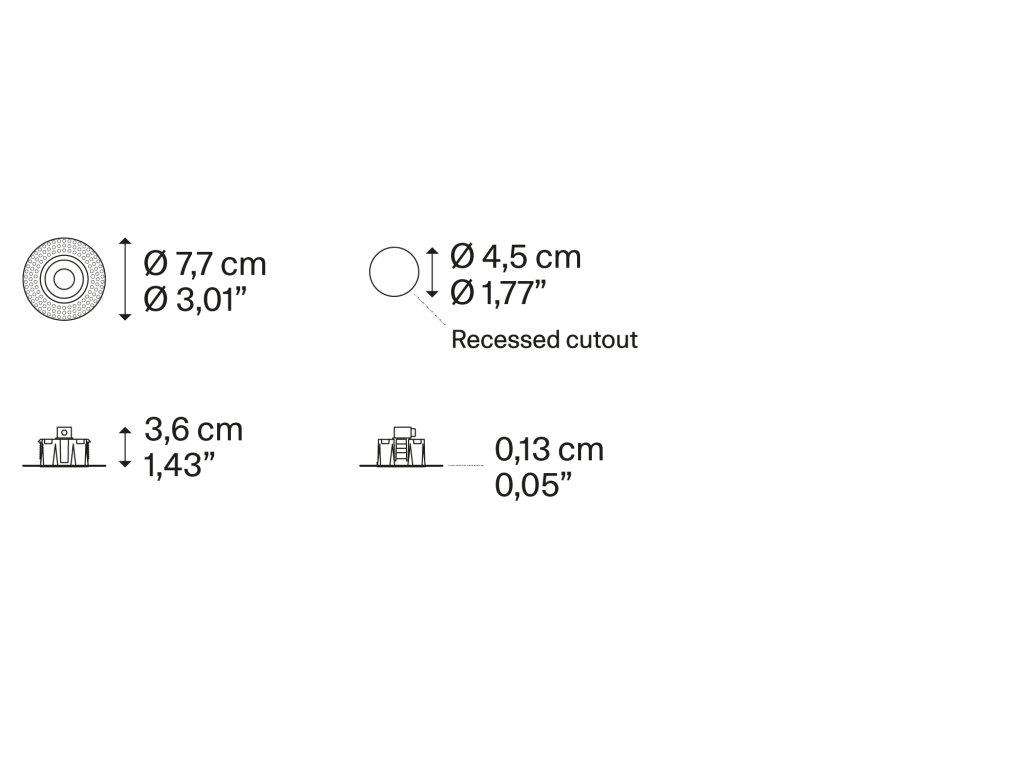 Zapustená montúra Micro Trimless Pure je malá kruhová konštrukcia z kovu s priemerom 7,7 cm, v ponuke v bielej alebo čiernej farbe. Táto montúra umožňuje spôsob montáže, ktorá elegantným spôsobom začlení svietidlo do stropu, čím vytvára čistý a ničím nerušený dojem. Je určená na pretmelenie pri montáži sadrokartónu.