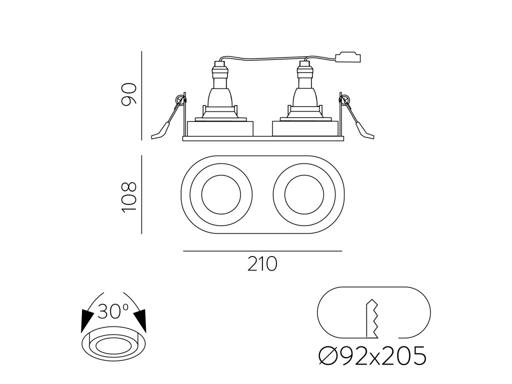 Musca je moderné zapustené svietidlo, navrhnuté v oválnom tvare s dvoma okrúhlymi reflektormi a vycibreným dizajnom, ktorý sa perfektne hodí do každého prostredia.