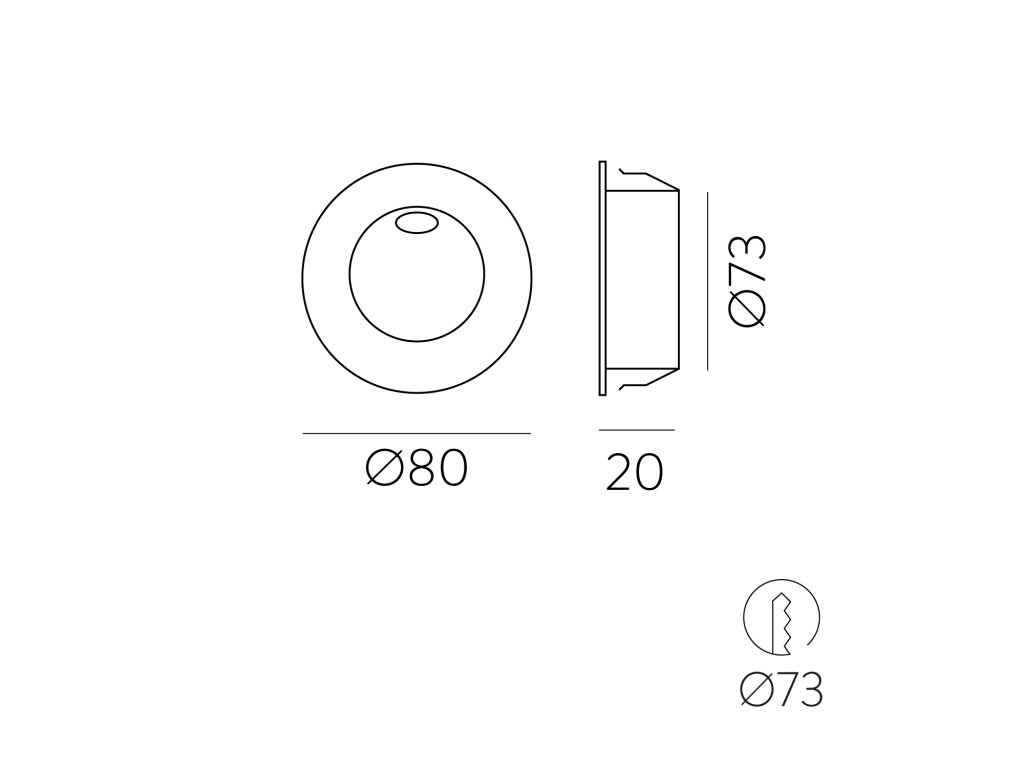 Zapustené LED svietidlo REGAL, ⌀ 8 cm, 3W, CRI90, IP54