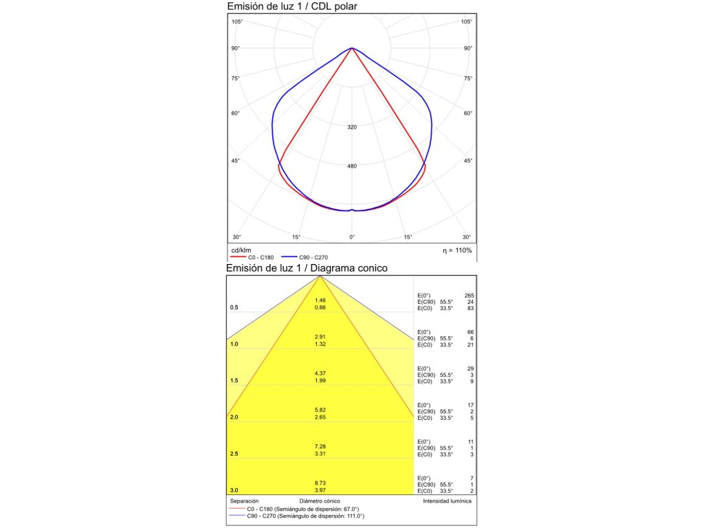 - integrovaný LED zdroj vydáva teplé biele svetlo (3000K)