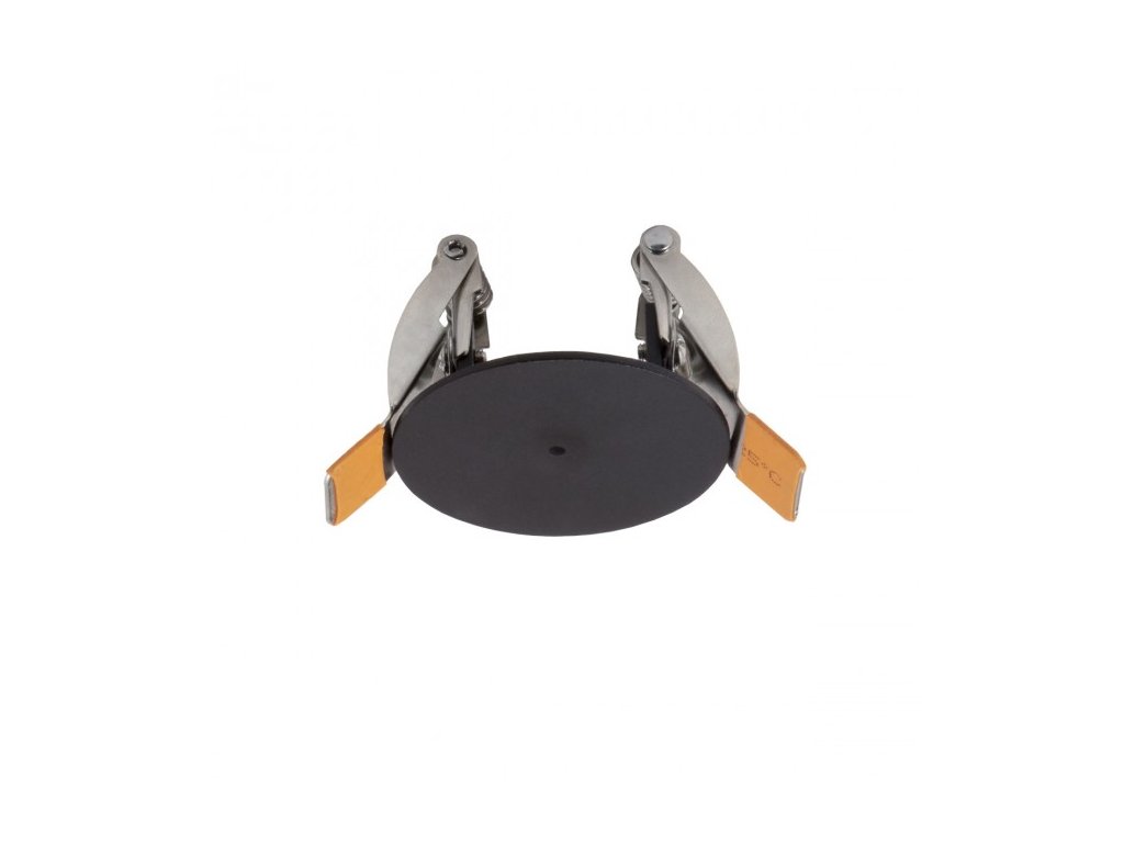 Okrúhla kovová rozeta na zapustenú montáž, lakovaná pieskovo bielou alebo čiernou farbou, na montáž jedného závesu. Maximálny priemer otvoru pre vstup kábla 5 mm.
