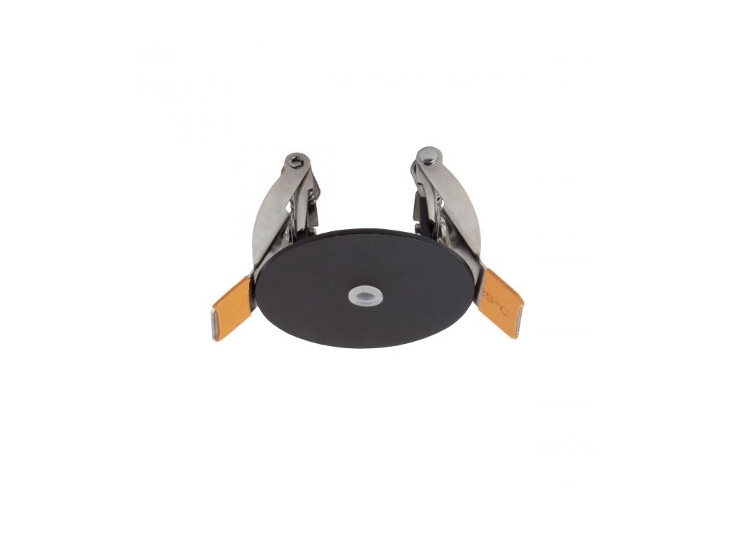 Okrúhla kovová rozeta na zapustenú montáž, lakovaná pieskovo bielou alebo čiernou farbou, na montáž jedného závesu. Maximálny priemer otvoru pre vstup kábla 7 mm.