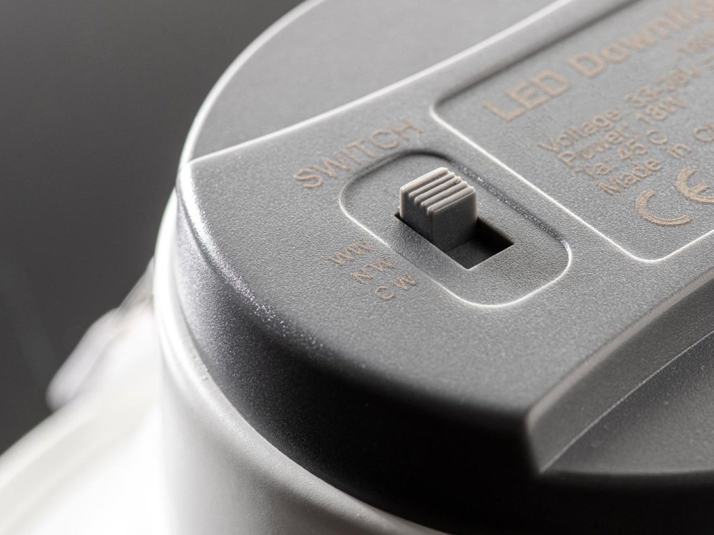 - v svietidle je zabudovaný prepínač farby svetla 3000K, 3500K alebo 4000K; - farbu svetla je možné ľahko nastaviť pri inštalácii pomocou prepínača
