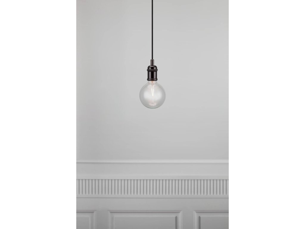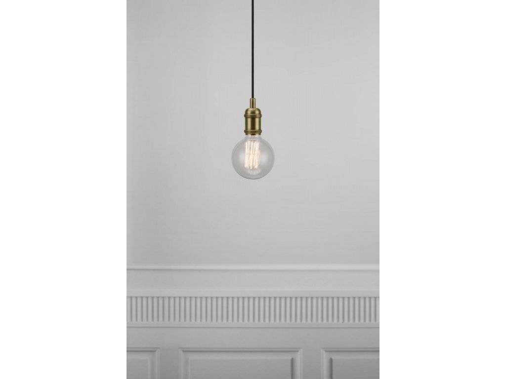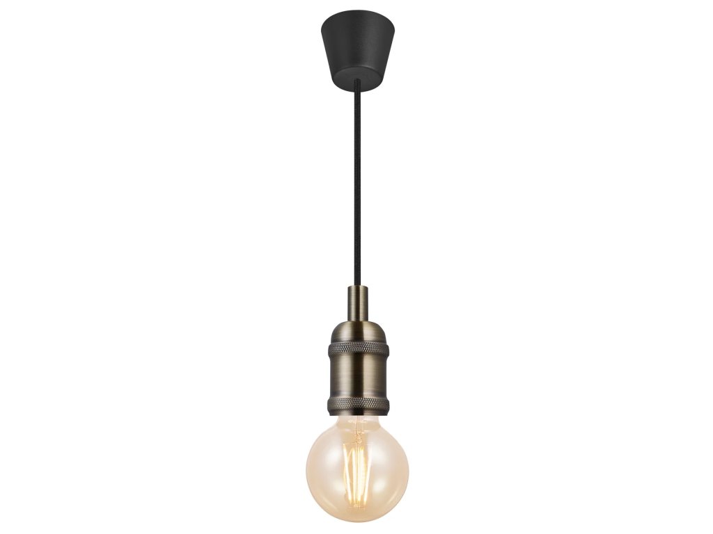 Závesné svietidlo s odhalenou žiarovkou patinovaného vzhľadu zo série Avra. Avra je vhodná do všetkých interiérov a dodáva sa s čiernou textilnou šnúrou, ktorá poskytuje elegantnú povrchovú úpravu zavesenia. Používa sa bez tienidla s veľkou dekoratívnou žiarovkou a je ideálny pre ktorékoľvek priestory, vrátane chodby alebo v skupinách nad jedálenským stolom.