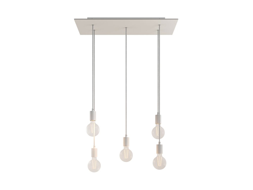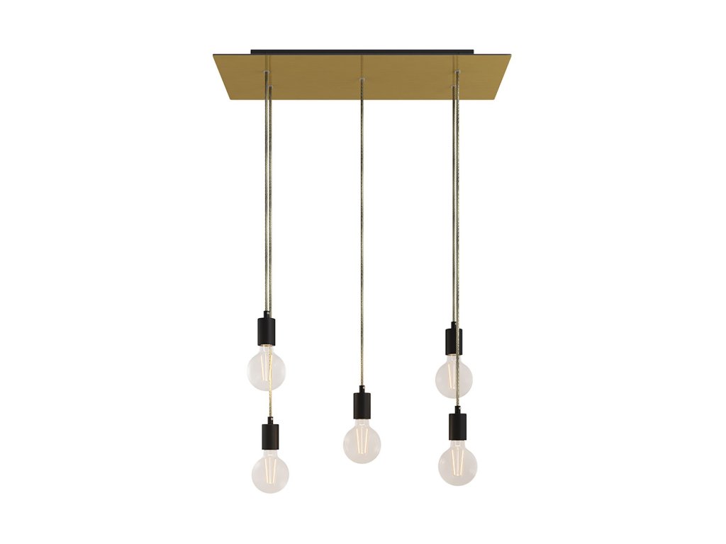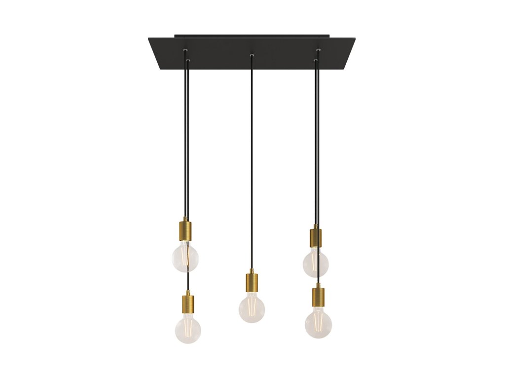 Závesná lampa s 5 svetlami, s obdĺžnikovým XXL baldachýnom Rose-one, textilným káblom a kovovými komponentmi