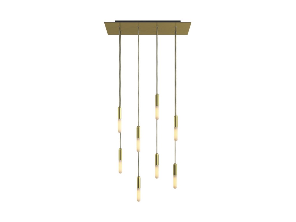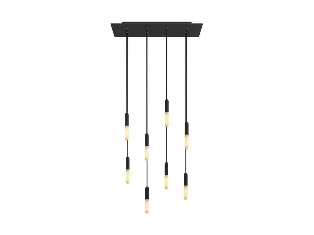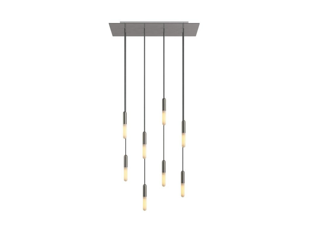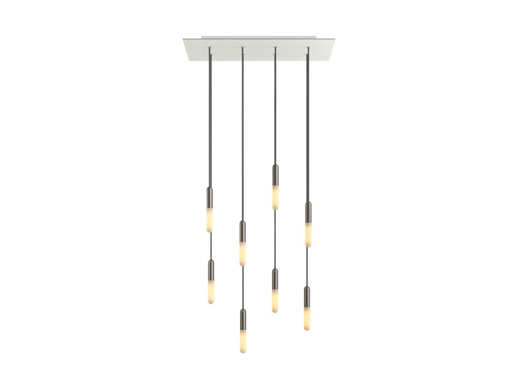 Dizajn tohto závesného svietidla s jedinečným scénickým efektom je inšpirovaný dvoma exkluzívnymi Creative-Cables produktmi: novým obdĺžnikovým tvarom nášho baldachýnu Rose-One a P-Light, dizajnovou E14 objímkou pre valcové žiarovky navrhnutú Guidom Parenzanom. Jednotlivé svetelné závesy tohto viacnásobného svietidla sú umiestnené v rôznych výškach a výborne kombinujú funkčnosť s precíznym vizuálnym designom. Svietidlo má nápadný tvar a vďaka svojim minimalistickým a elegantným líniám je ideálne na osvetlenie veľkých obývacích priestorov, hotelových hál, alebo sa hodí na vylepšenie vzhľadu často strohých konferenčných miestností.