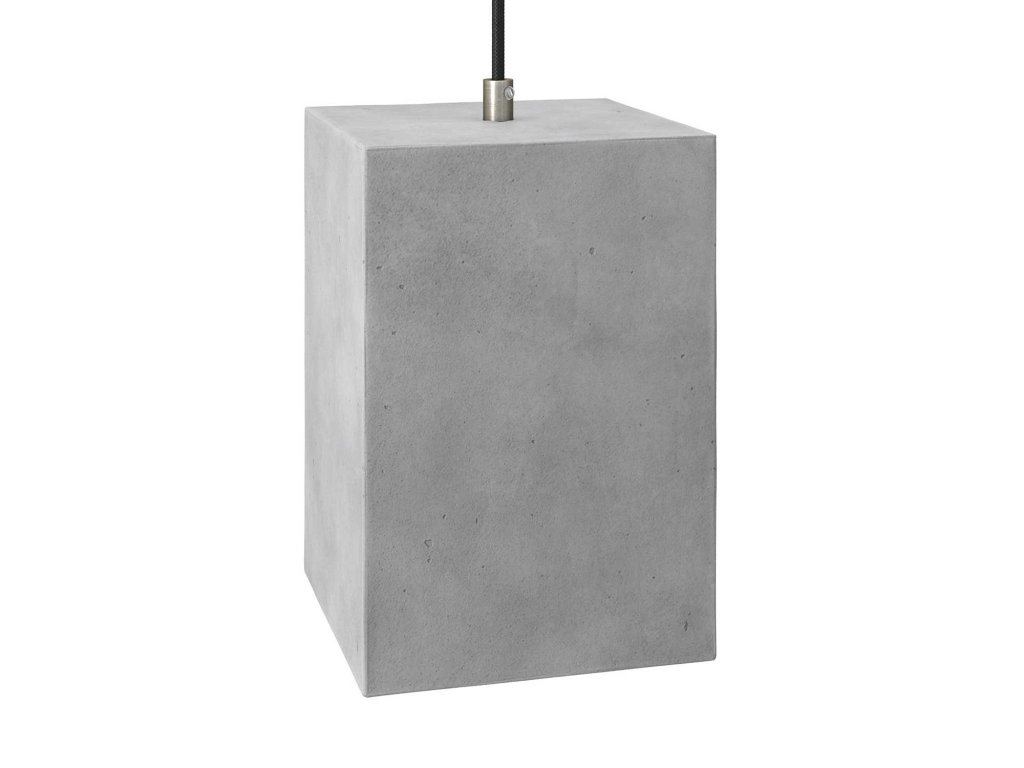 Závesná lampa s textilným káblom, betónovým tienidlom cube a kovovými detailmi