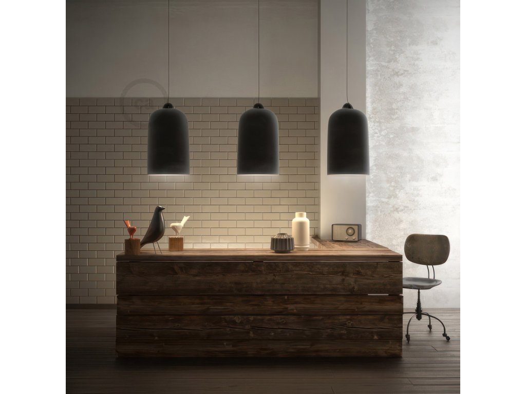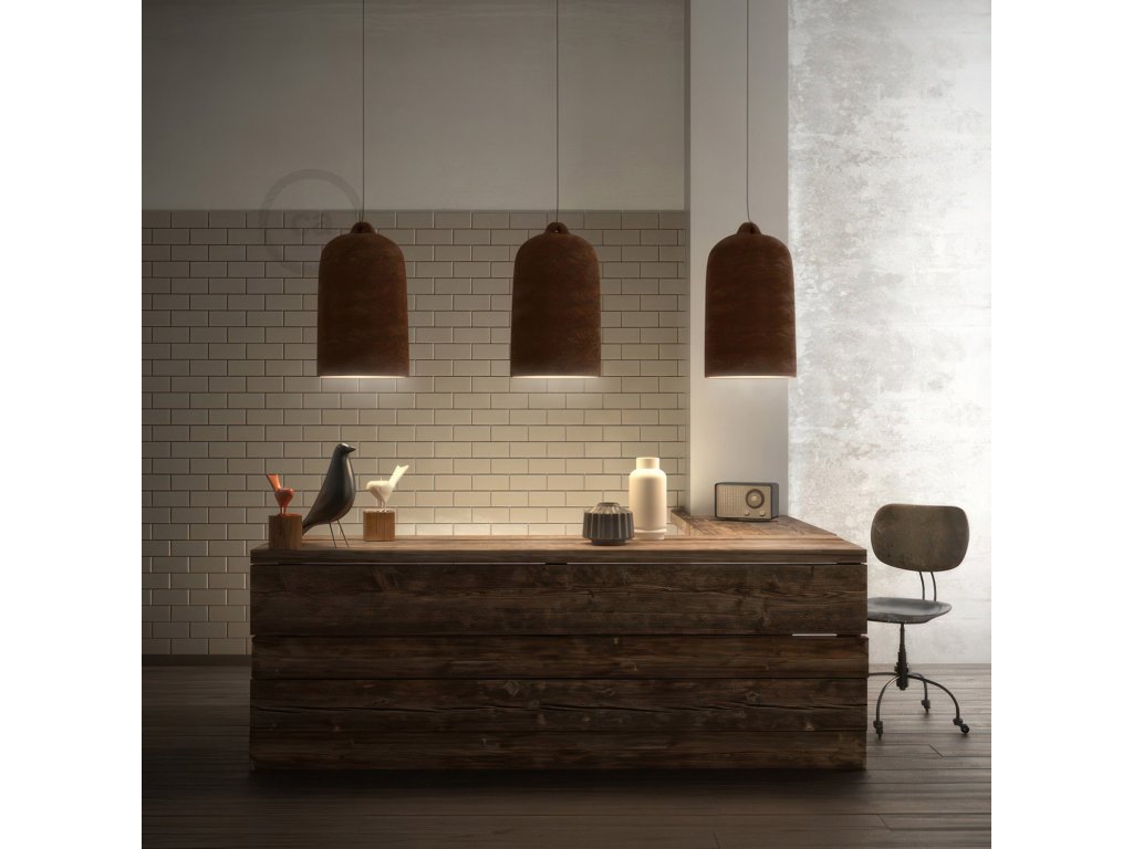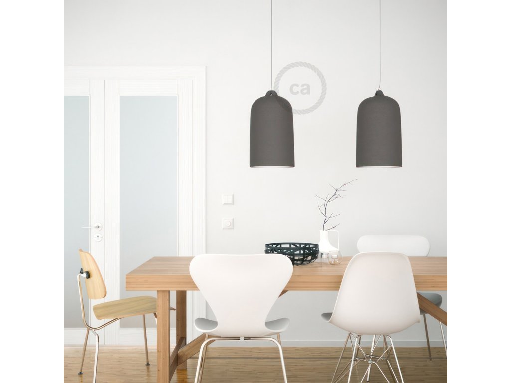 Závesná lampa Creative-Cables s tienidlom Zvon XL je elegantné a vysoko účinné závesné osvetlenie ideálne nad stôl alebo barový pult, kde musíte sústrediť svetelný lúč smerom dole. Táto lampa sa skladá z keramického tienidla veľkých rozmerov vyrobeného výhradne v Taliansku v kombinácii s jedným z našich farebných textilných káblov a našimi najobľúbenejšími komponentmi. Každé prevedenie tohto tienidla je navrhnuté tak, aby Vám umožnilo vytvoriť tú správnu atmosféru v interiéri, ktorý vytvárate: zvoľte lesklú bielu pre čistý a elegantný efekt alebo tabuľový dizajn, ktorý dodá Vašej lampe originálny nádych. Tiež si môžete vybrať najoriginálnejšiu povrchovú úpravu, ako je hrdza a cement, a vytvoríte tak dokonalé prostredie priemyselného štýlu.