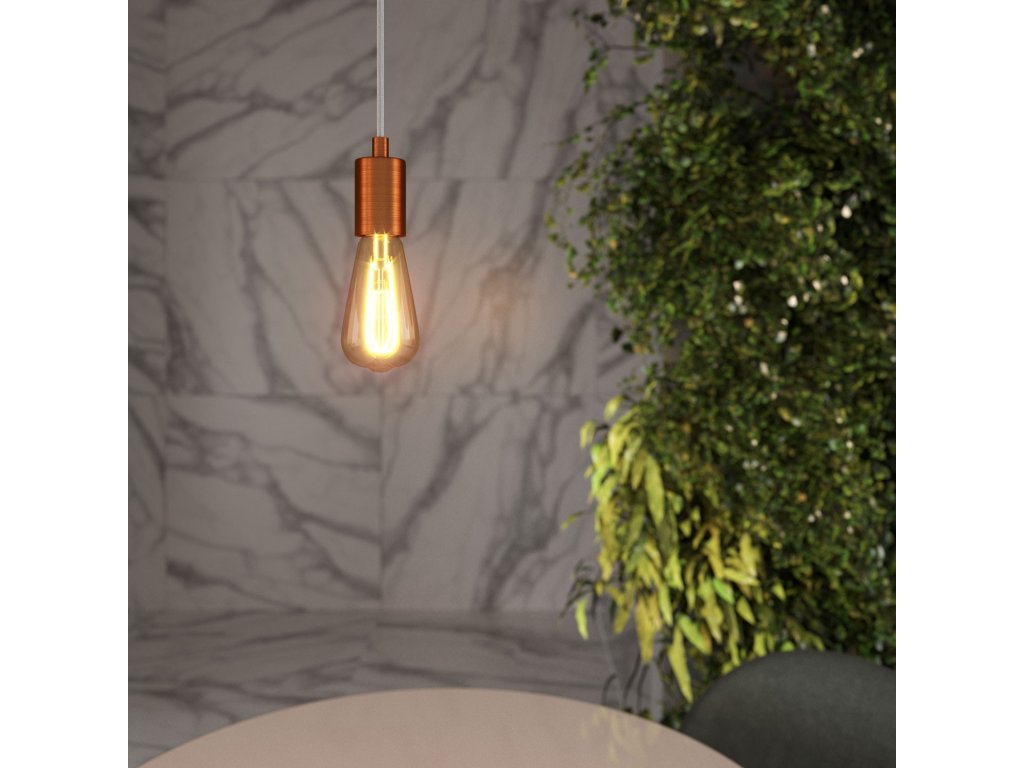 Závesné svietidlo je určené milovníkom vintage štýlu a pre tých, ktorí hľadajú osvetlenie s viditeľnými žiarovkami. Závesná lampa je ideálna keď chcete pridať dotyk retra do akejkoľvek miestnosti: saténový kovový povrch je perfektný na vytvorenie elegantného detailu. Odhalená žiarovka môže osvetliť aj tie miestnosti, kde je prirodzené svetlo vzácne. Použite túto stropnú lampu na osvetlenie podkrovia vybaveného jedinečnými kúskami, ktoré sa nachádza na najrušnejších historických miestach v meste. Tiež sa bude hodiť nad kuchynským pultom či nad jedálenským stolom, do chodby alebo do spálne.