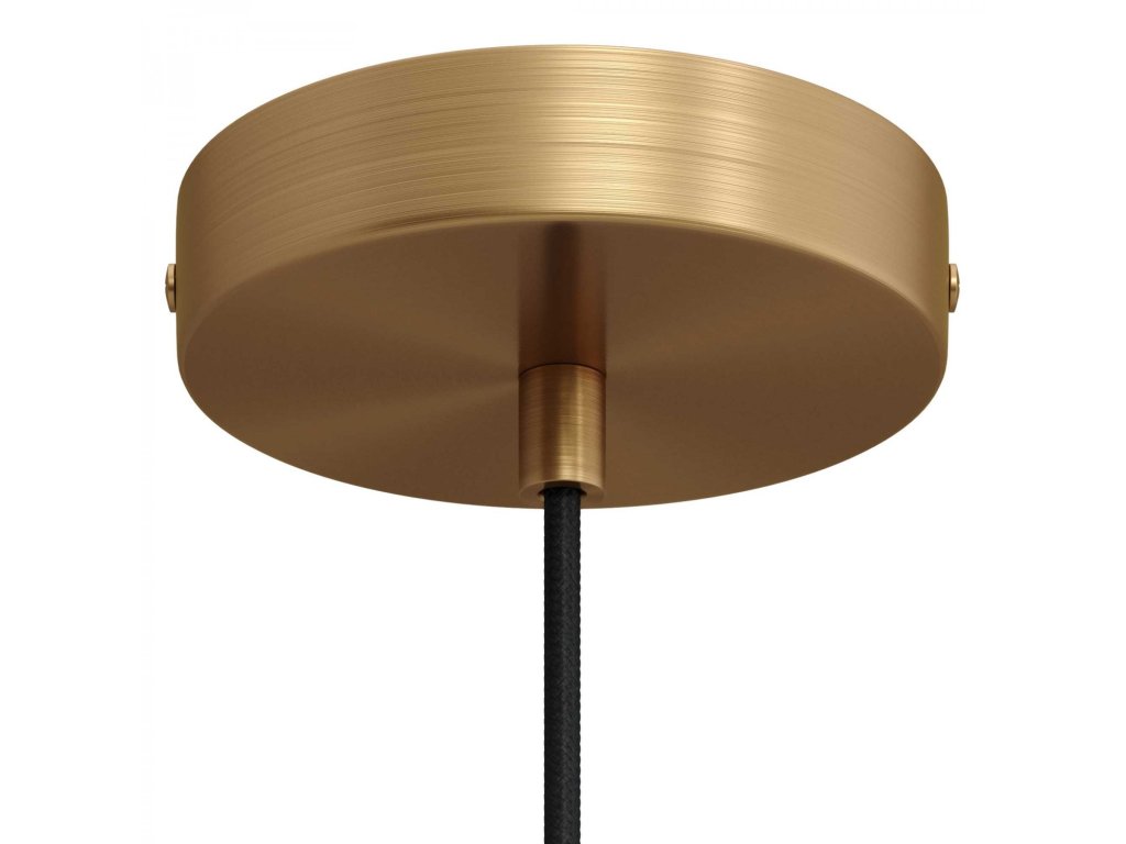 Závesná lampa s textilným káblom a matnými kartáčovanými kovovými detailmi