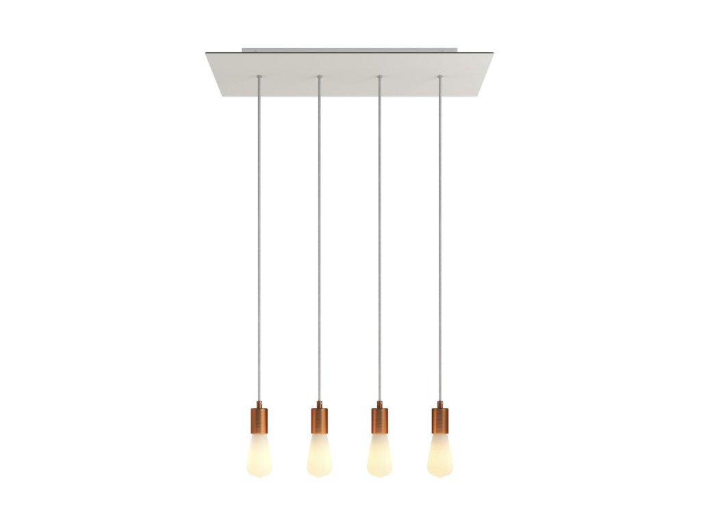 Dizajn tohto závesného svietidla je inšpirovaný novým obdĺžnikovým tvarom nášho baldachýnu Rose-One, svojím vzhľadom a vystavenými žiarovkami vytvára jedinečný scénický efekt. Toto svietidlo so štyrmi svetelnými závesmi je dostupné v rôznych farebných prevedeniach. Biela alebo čierna verzia tohto svietidla je ideálna do interiéru s moderným súčasným štýlom, zatiaľ čo matné kovové prevedenie dodá vášmu interiéru jemný nádych vintage štýlu.
