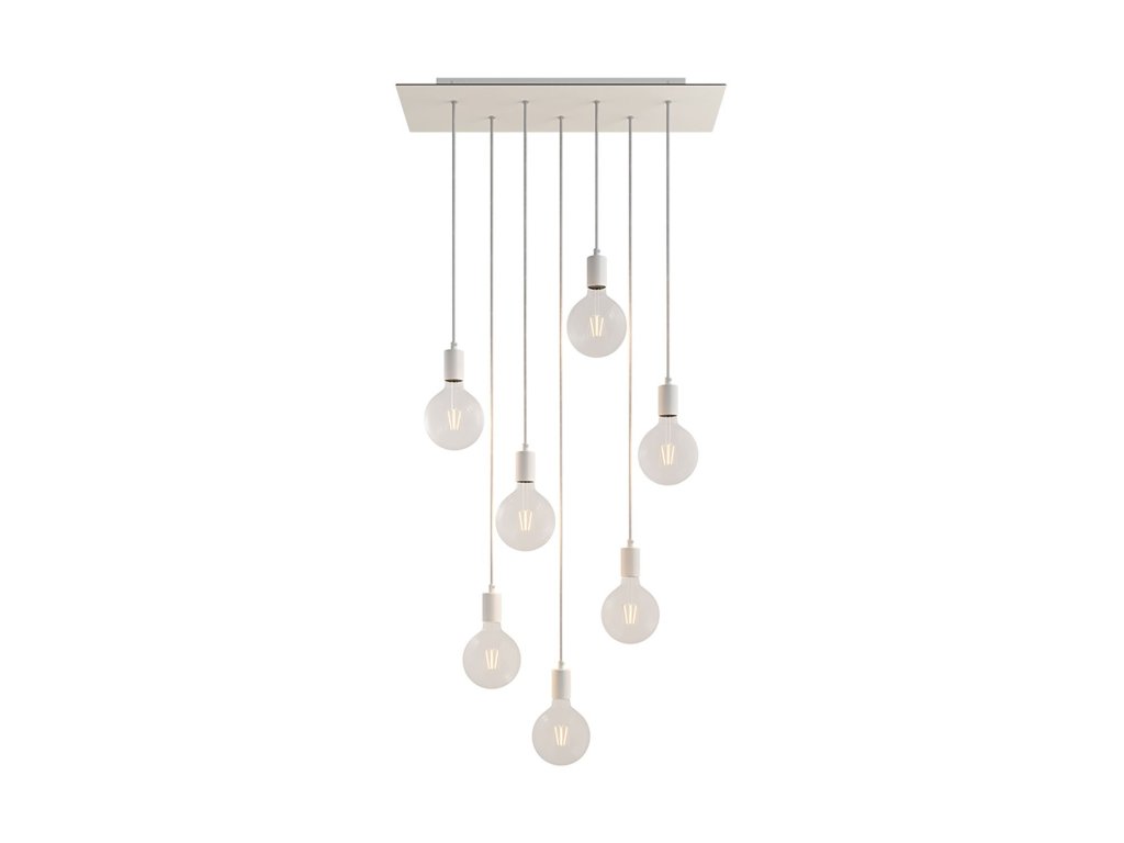 Závesná lampa so 7 svetlami, s obdĺžnikovým XXL baldachýnom Rose-one, textilným káblom a kovovými komponentmi