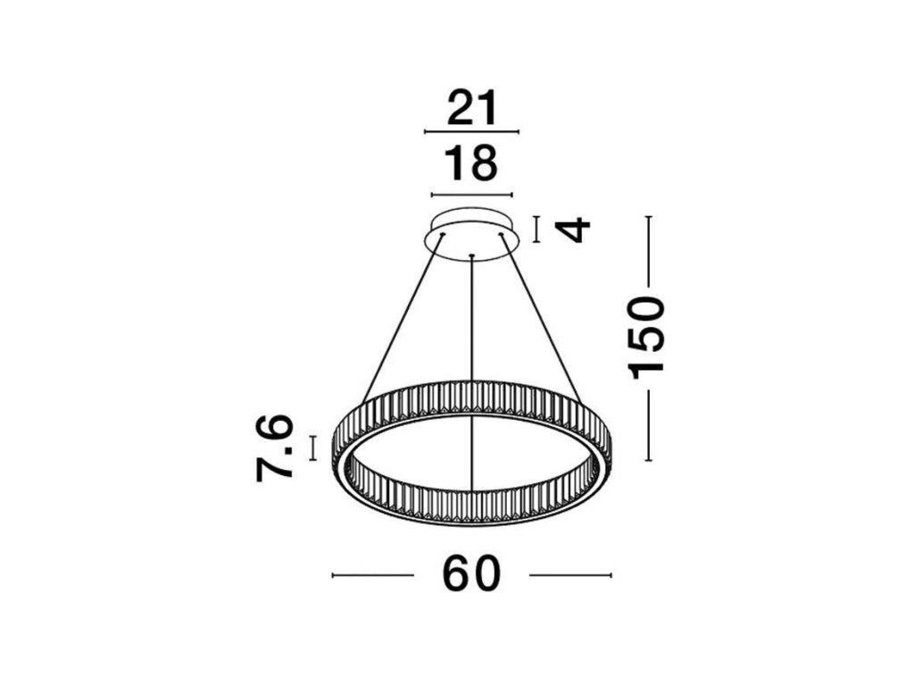 Jednoduchý dizajn strieborného, kovového kruhu - 60cm vysadeného masívnymi krištáľovými hranolčekmi v kombinácii so striebornou rozetou prepožičiavajú svietidlu nádych klasickej elegancie a robia z neho ideálny doplnok do akéhokoľvek prostredia.