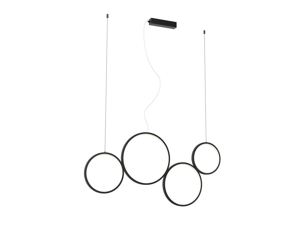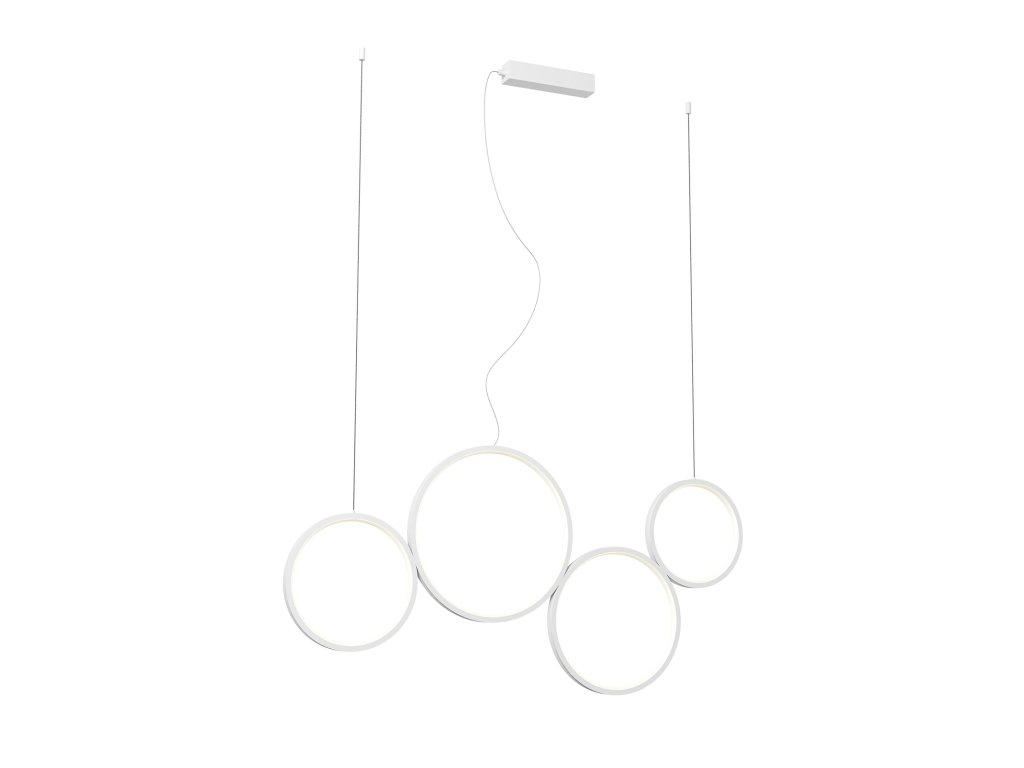 Závesné interiérové svietidlo, vybavené SMD LED diódami, s možnosťou voľby teploty farby svetla, kovová a hliníková konštrukcia elektrostaticky lakovaná v pieskovo čiernej, bielej alebo zlatej, biely PVC difúzor.