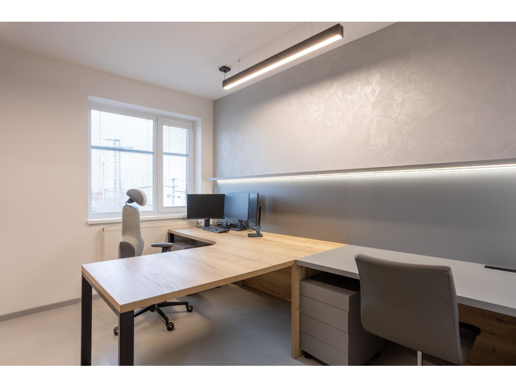 - Závesné LED svietidlo zavesené pomocou lankových závesov, s možnosťou spájania do radov a rôznych zostáv.