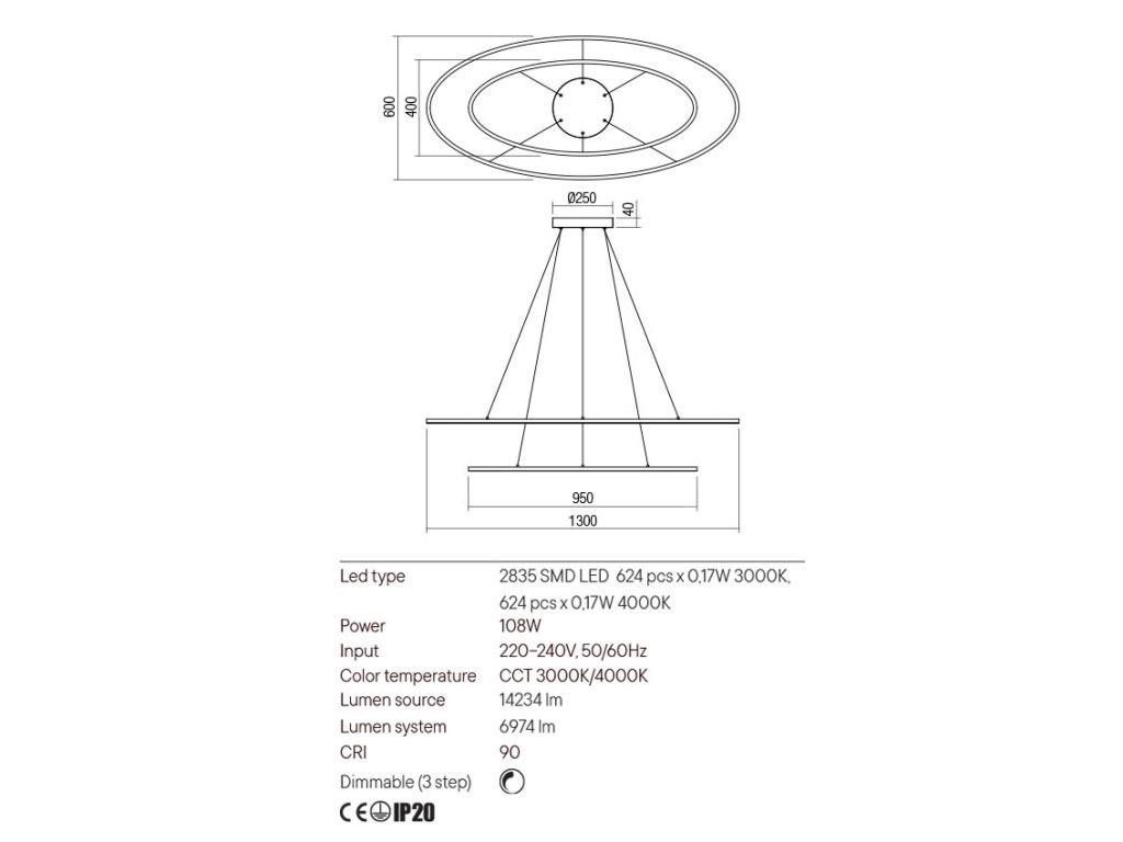 Závesné LED oválne svietidlo LEO, 2 ovály, ø95cm/ø130cm