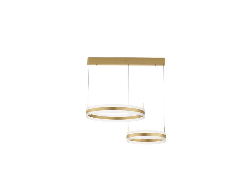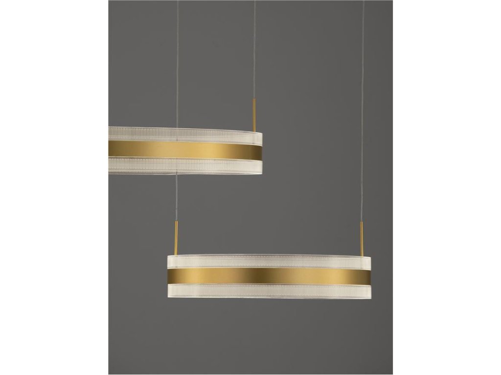 Závesné svietidlo AGOS, 124W je k dispozícii v zlatej farbe. Svietidlo je vyrobené z hliníka a akrylu. Rozmery svietidla sú 82x150 cm. Integrovaný LED zdroj vydáva teplé biele svetlo (3000K). Svietivosť zdroja je 5421 lúmenov a je stmievateľný systémom TRIAC. Svietidlo odporúčame nad jedálenský stôl, obývacej izby alebo spálne.