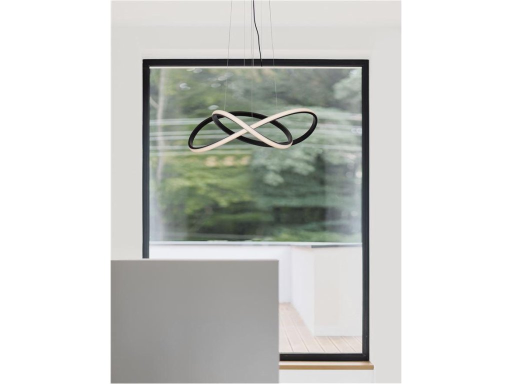 Závesné svietidlo AMARA, 28W je k dispozícii v čiernej farbe. Svietidlo je vyrobené z hliníka. Rozmery svietidla sú 56x120 cm. Integrovaný LED zdroj vydáva teplé biele svetlo (3000K). Svietivosť zdroja je 1600 lúmenov a je nestmievateľný. Svietidlo odporúčame nad jedálenský stôl, do obývacej izby alebo spálne.