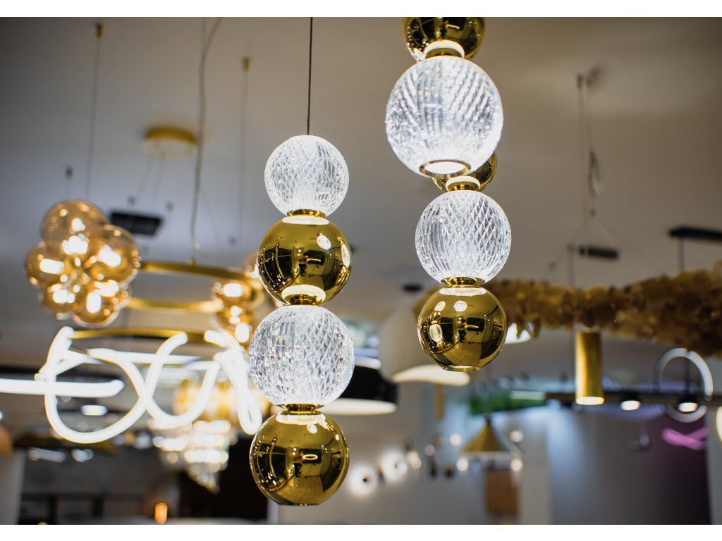 Závesné svietidlo BRILLE, 18W je k dispozícii v zlatej farbe. Svietidlo je vyrobené z hliníka a skla. Rozmery svietidla sú 30x200 cm. Integrovaný LED zdroj vydáva teplé biele svetlo (3200K). Svietivosť zdroja je 852 lúmenov a je stmievateľný systémom TRIAC. Svietidlo odporúčame nad jedálenský stôl, do obývacej izby alebo spálne.
