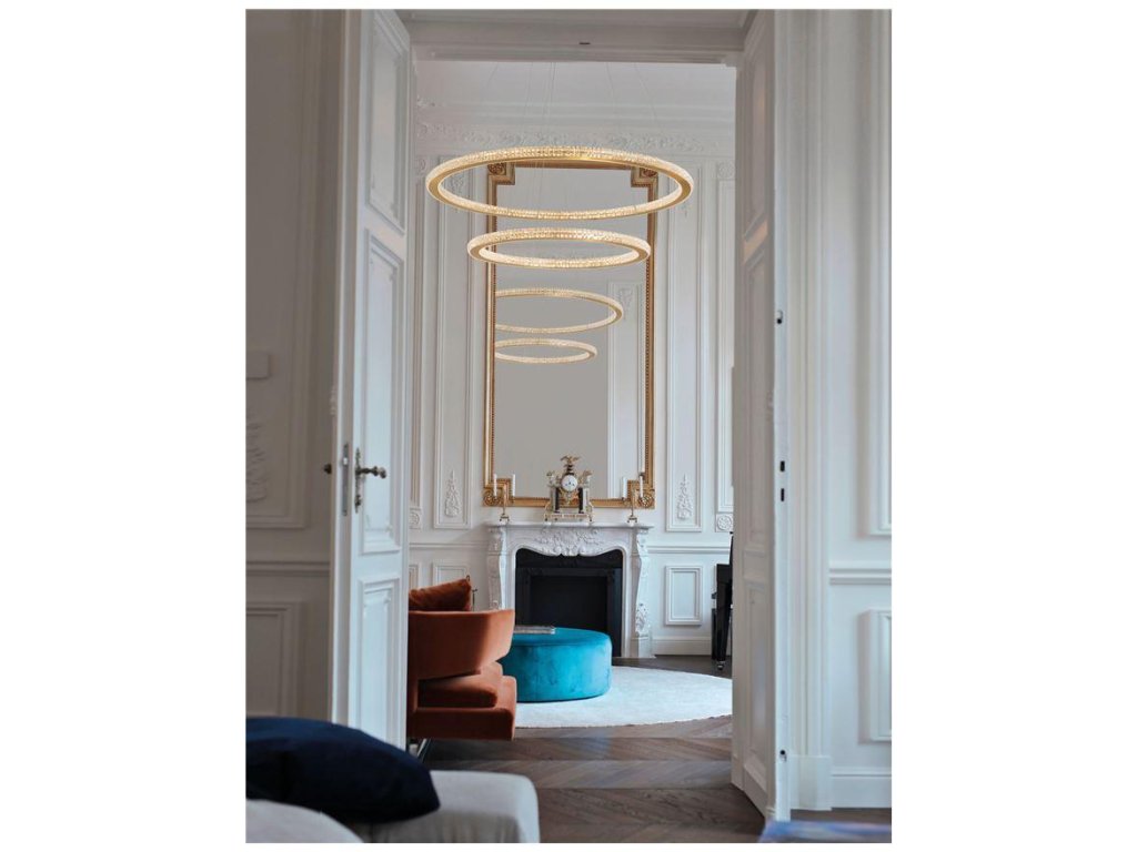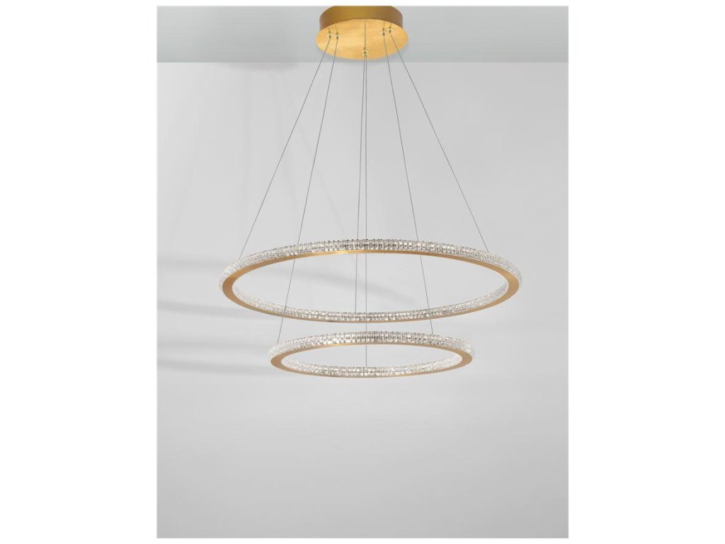 Závesné svietidlo CILION, 56W je k dispozícii v mosadznom prevedení. Svietidlo je vyrobené z hliníka a akrylu. Rozmery svietidla sú 60x150 cm. Integrovaný LED zdroj vydáva teplé biele svetlo (2926K). Svietivosť zdroja 3555 lúmenov a je stmievateľný. Svietidlo pre luxusný design odporúčame do podobne dizajnovo zariadených vnútorných priestorov, napr. nad jedálenský stôl, do obývacej izby alebo spálne.