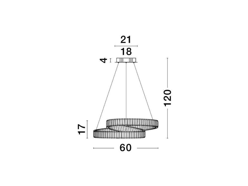 Závesné svietidlo CONCETO, 50W je k dispozícii v zlatej a chrómovej farbe. Svietidlo je vyrobené z kovu a krištáľu. Rozmery svietidla sú 60x120 cm. Integrovaný LED zdroj vydáva teplé/denné biele svetlo (3500K). Svietivosť zdroja je 4070 lúmenov a je stmievateľný systémom TRIAC. Svietidlo odporúčame nad jedálenský stôl, do obývacej izby alebo spálne.