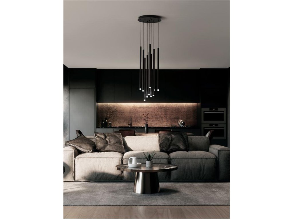 Závesné svietidlo DANDIA, 60W je k dispozícii v čiernej farbe. Svietidlo je vyrobené z hliníka. Rozmery svietidla sú 40,5x150 cm. Integrovaný LED zdroj vydáva teplé biele svetlo (3000K) Svietivosť zdroja je 4224 lúmenov a je stmievateľný systémom TRIAC. Svietidlo odporúčame nad jedálenský stôl, do obývacej izby alebo spálne.